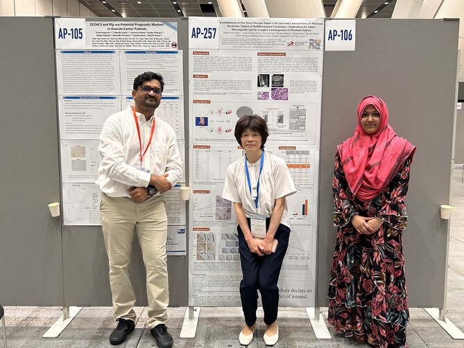 7月に東京で婦人科腫瘍学会が開催されました。笹森先生、菅野先生、ハシブル先生、ショルミ先生、石川はposter sessionでの発表でした。名古屋で頑張っている石橋先生はoral sessionでの発表でした。今回はASGOとの共同開催で、アジアでの共同研究の話題など国際色豊かな学会でした。